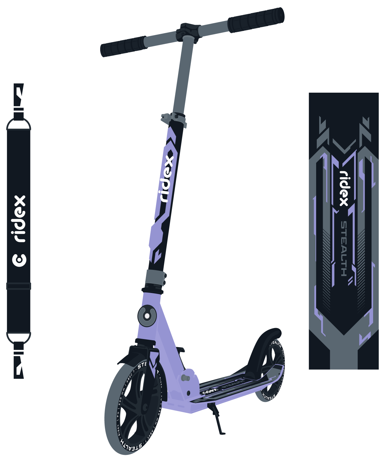 Купить RIDEX Самокат 2-х колесный RIDEX Stealth 230/200 мм, фиолетовый