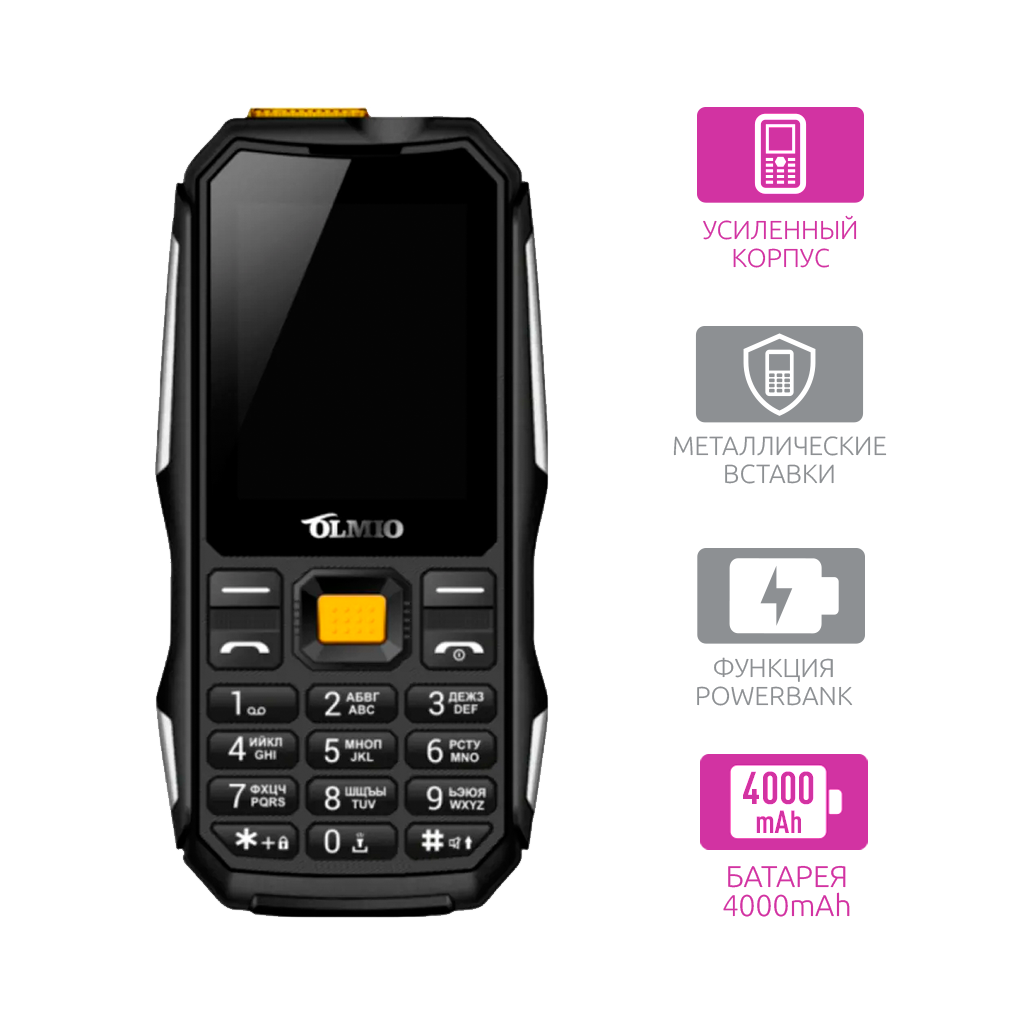 Мобильный телефон Olmio X04, усиленный корпус, черно-оранжевый