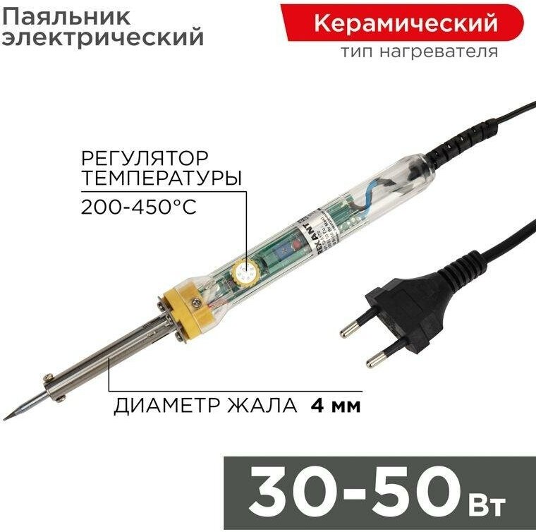 Купить REXANT 120170 Паяльник 30-50Вт/230В с керамическим нагревателем и регулятором мощности REXANT