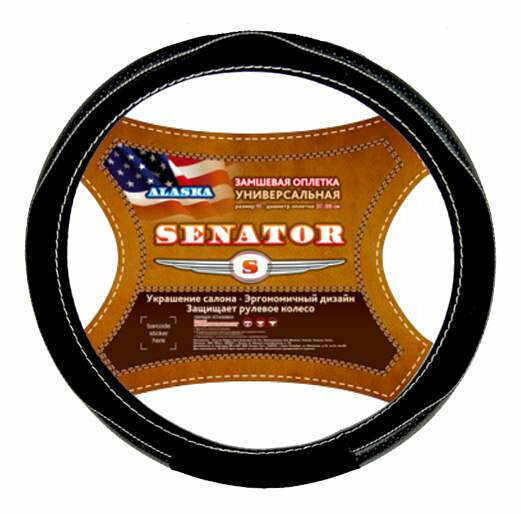 Оплетка на руль замшевая SENATOR Alaska "M" (d=38см) /черный/