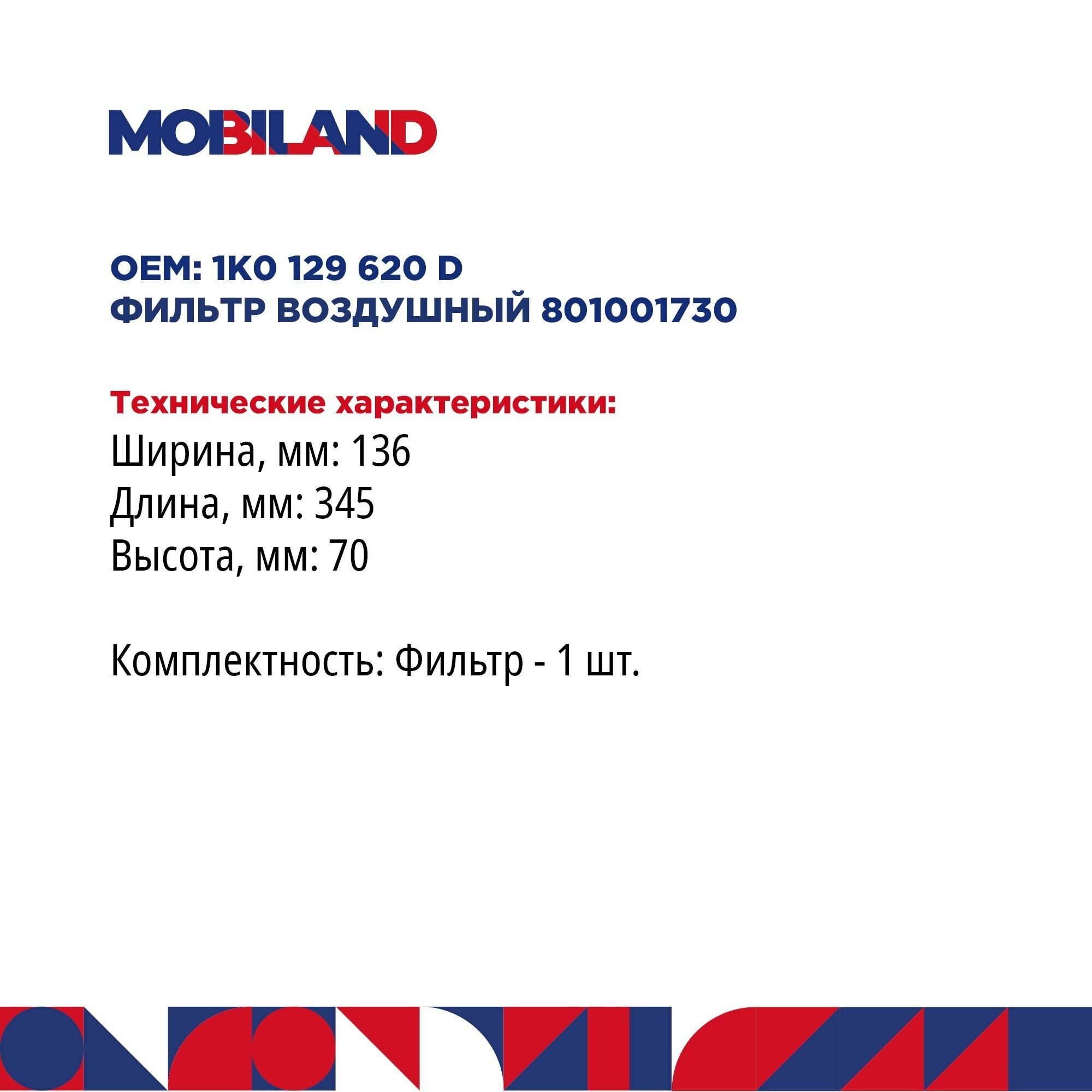 Купить Фильтр Воздушный MOBILAND арт. 801001730
