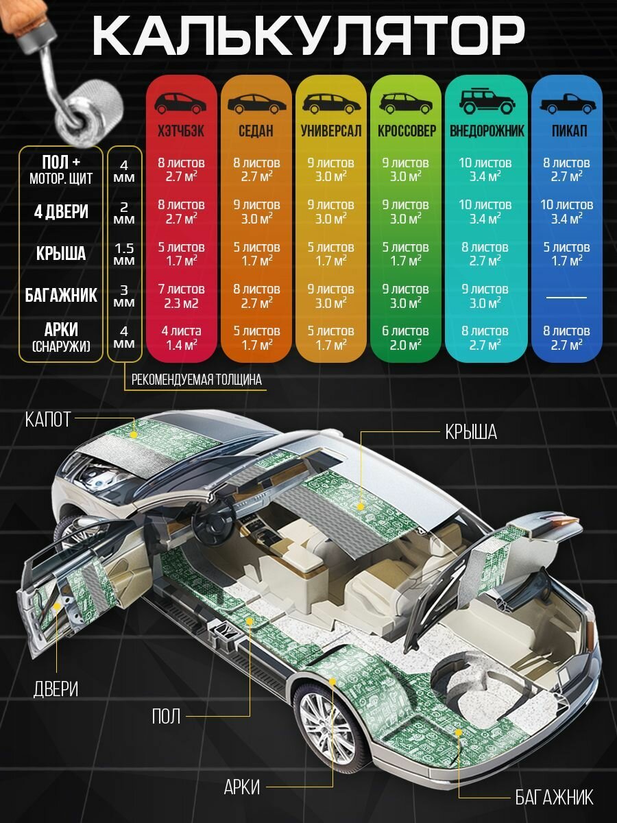 | Дополнительная информация | Шумоизоляция профессиональная самоклеящаяася для максимальной шумоизоляции и аудиоподготовки автомобиля |