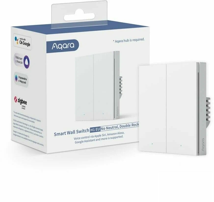 Умный выключатель AQARA H1 EU(без нейтрали, 2 клавиши)