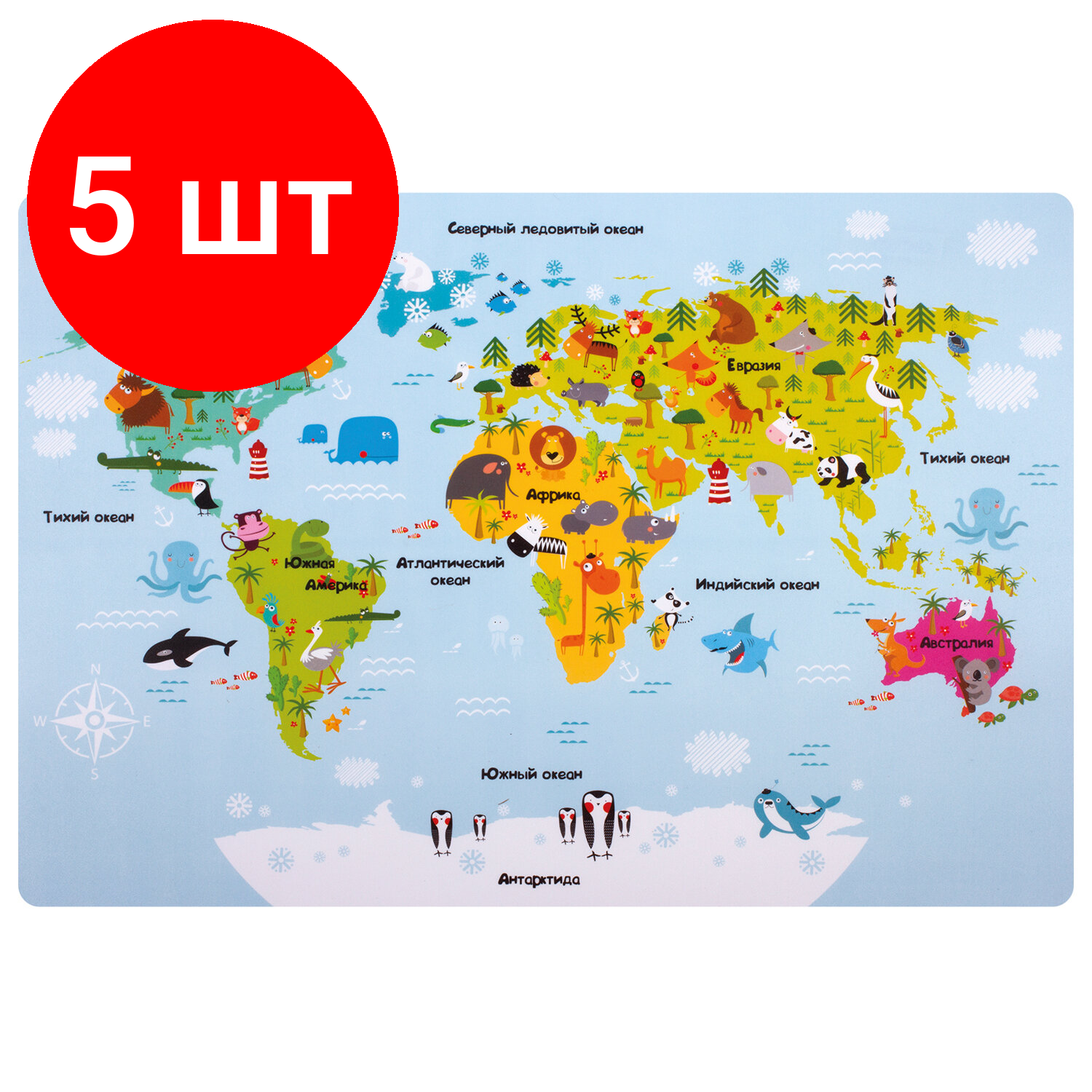 Комплект 5 шт, Настольное покрытие пифагор, А3+, пластик, 46x33 см, "Map", 270403