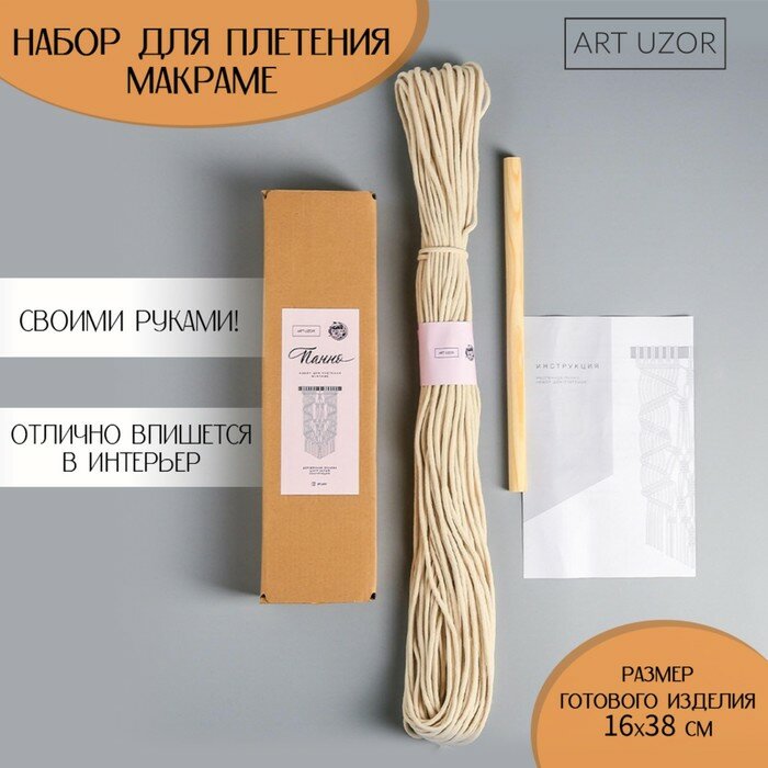 Арт Узор Панно "Геометрия", набор для плетения макраме, белое 32 х 5,2 х 8,2 см
