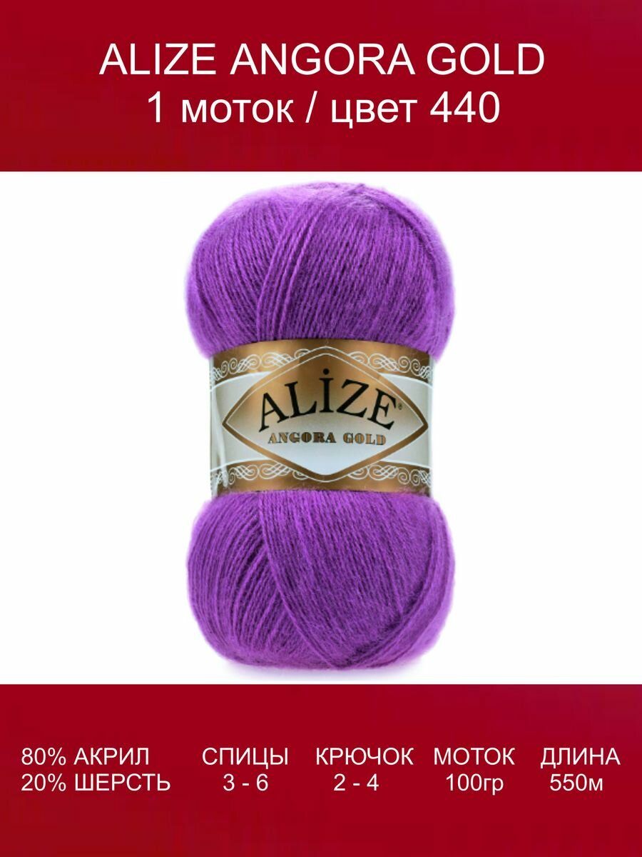 Пряжа ALIZE 'Angora Gold' 100гр. 550м (80% акрил, 20% шерсть) ТУ (111 т.лиловый). В комплекте 5 штук.
