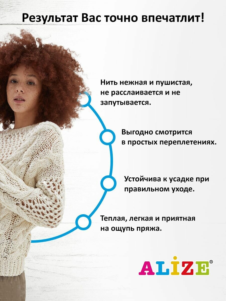 Пряжа Alize Angora Real 40 (Ангора Реал 40) - 5 мотков цвет 67 молочно-бежевый 40% шерсть, 60% акрил 100г 480м
