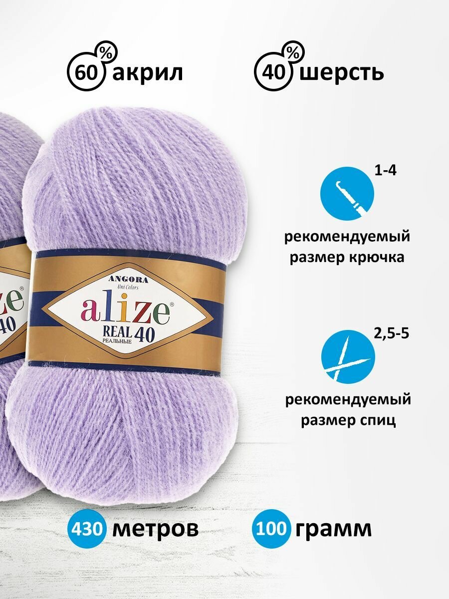 Купить Пряжа Alize Angora Real 40 сирень (146), 60%акрил/40%шерсть, 430м, 100г, 5шт