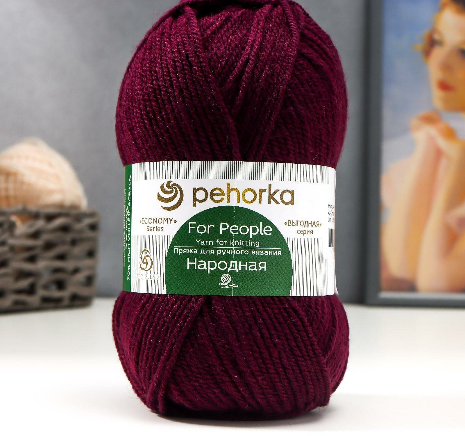 Пряжа Пехорка - Народная, 30% шерсть, 70% акрил объёмный, 220м/100г, сливовая, 1 шт.