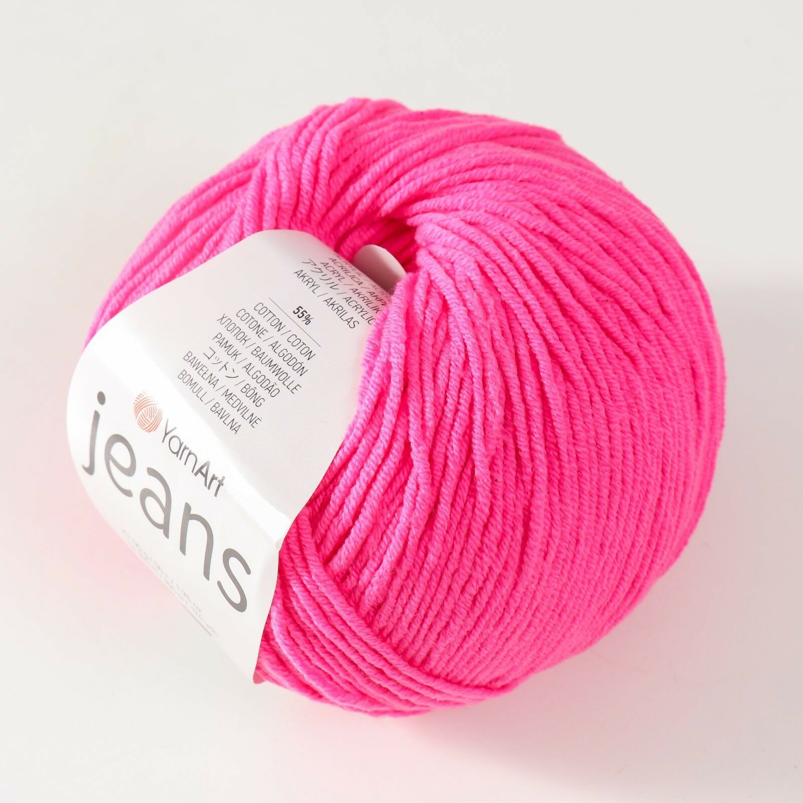 Пряжа YarnArt Jeans (ЯрнАрт Джинс) - 1 моток Цвет: 20 ярко-розовый 55% хлопок, 45% полиакрил 160м/50г