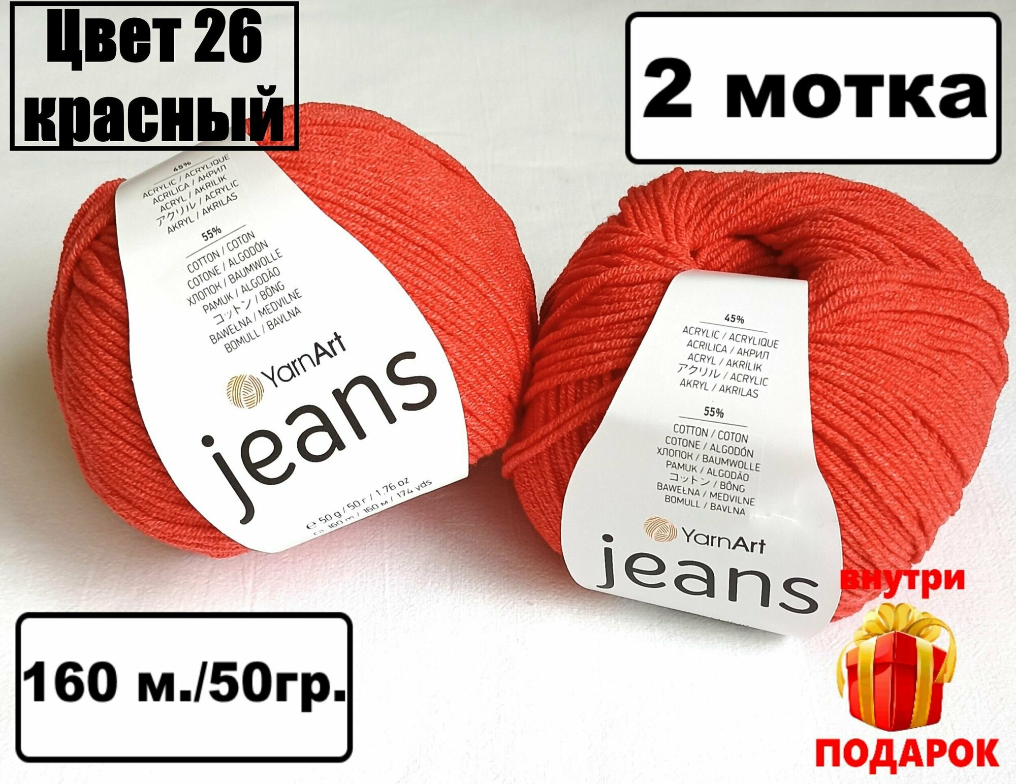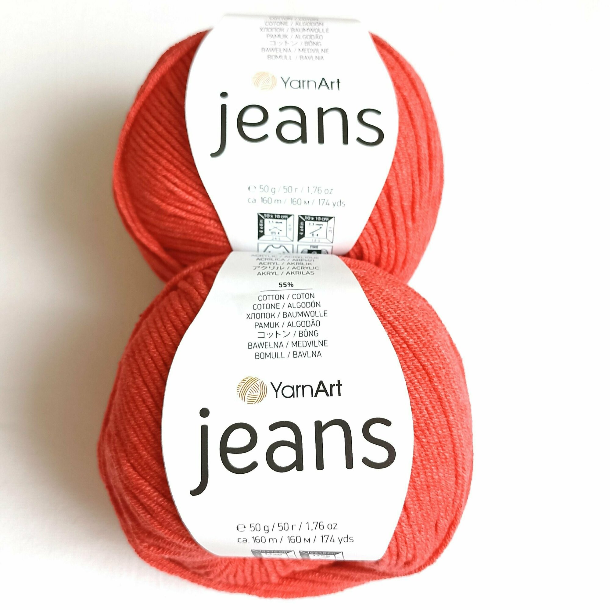 СохранитьПряжа YarnArt Jeans- 2 шт, 90 красный, 160м/50г, 55% хлопок, 45% полиакрил /ЯрнАрт Джинс/ интересное: