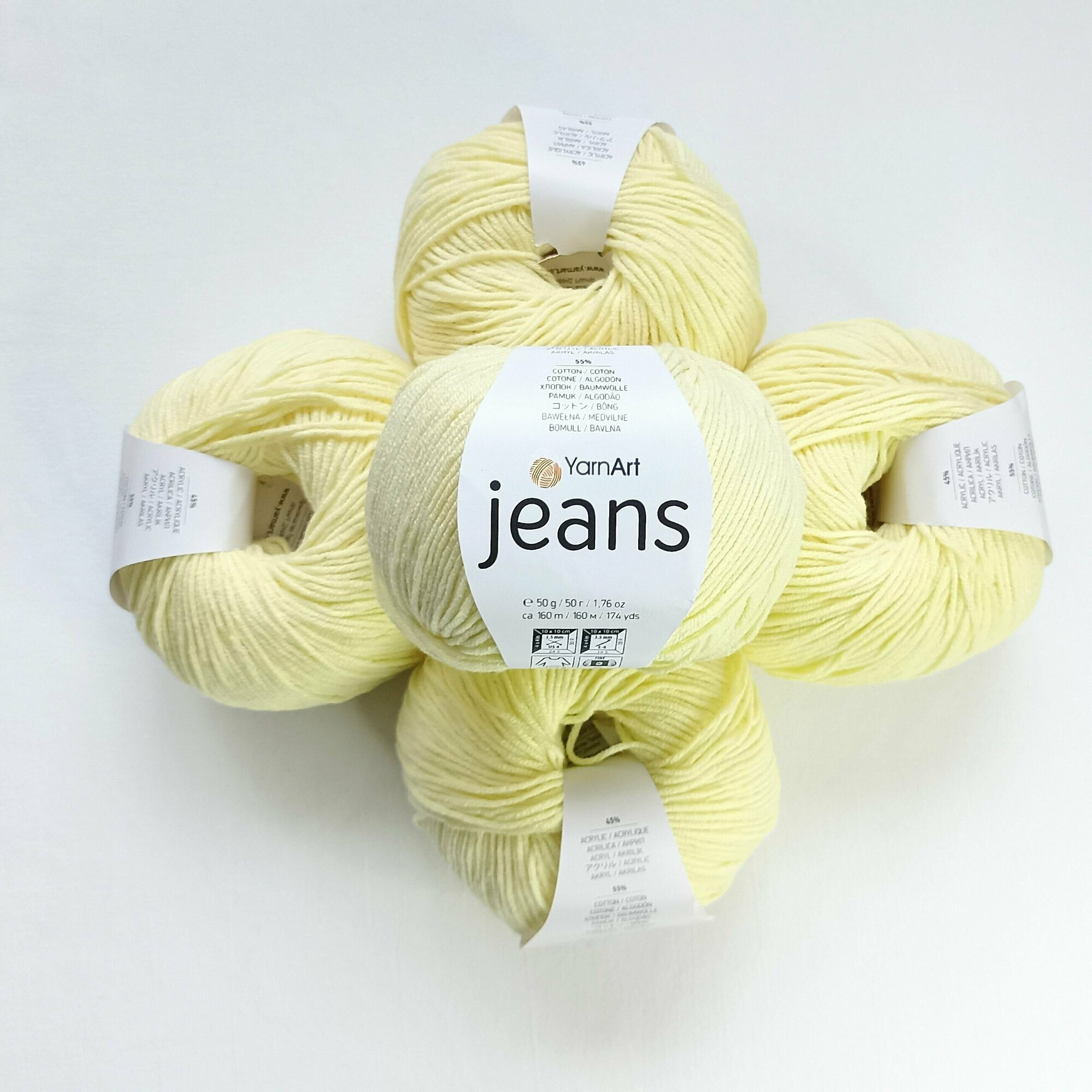 Пряжа "Джинс", цвет: 88 - Цыпленок, 10 шт., Хлопок 55%, Полиакрил 45%, 50 гр. 160 м.