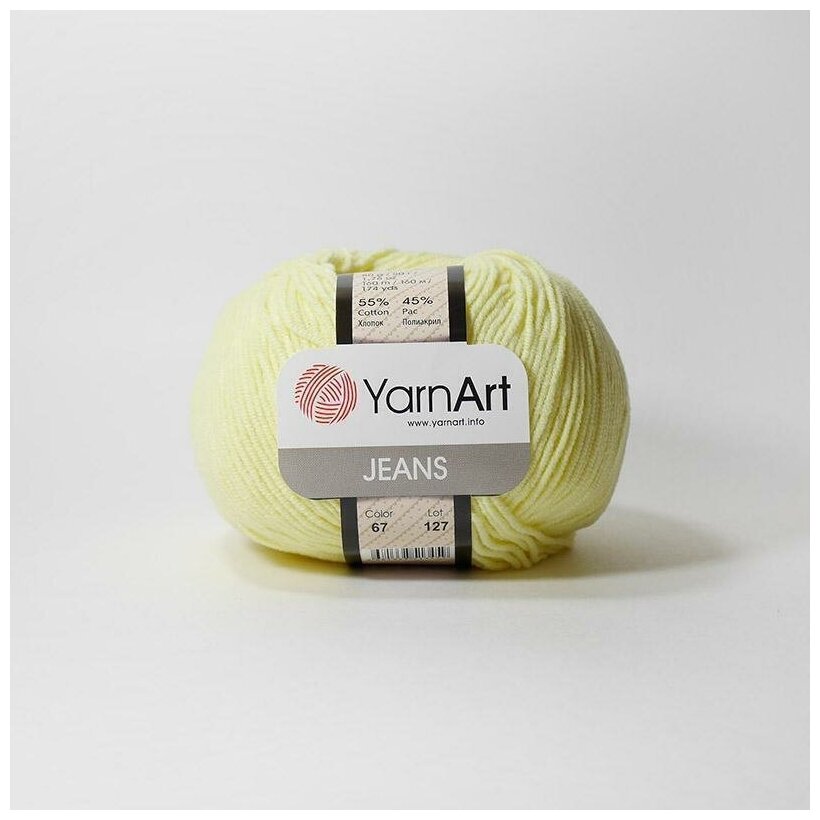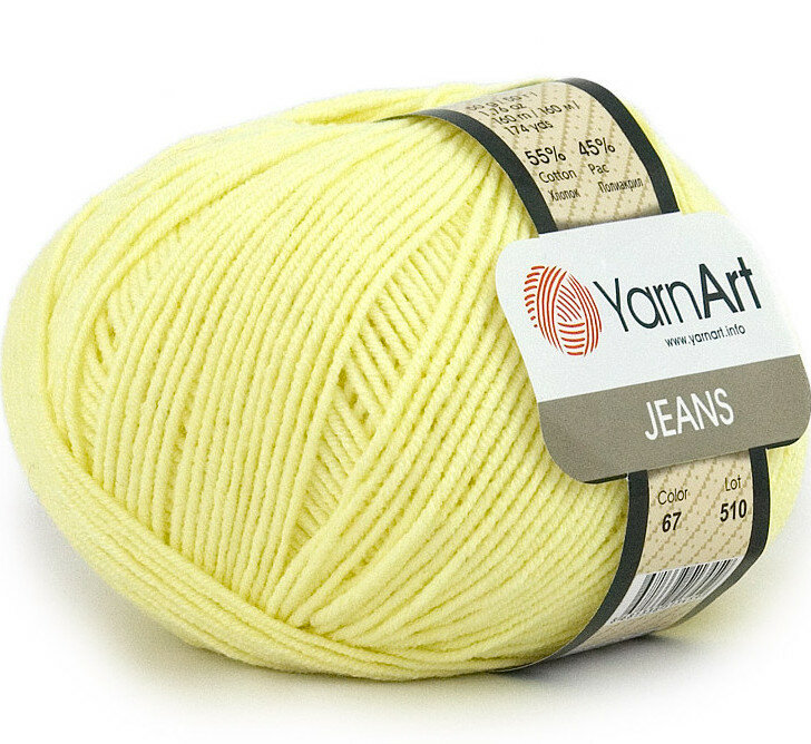 Пряжа YarnArt Jeans светло-желтый (67), 55%хлопок/45%акрил, 160м, 50г, 1шт