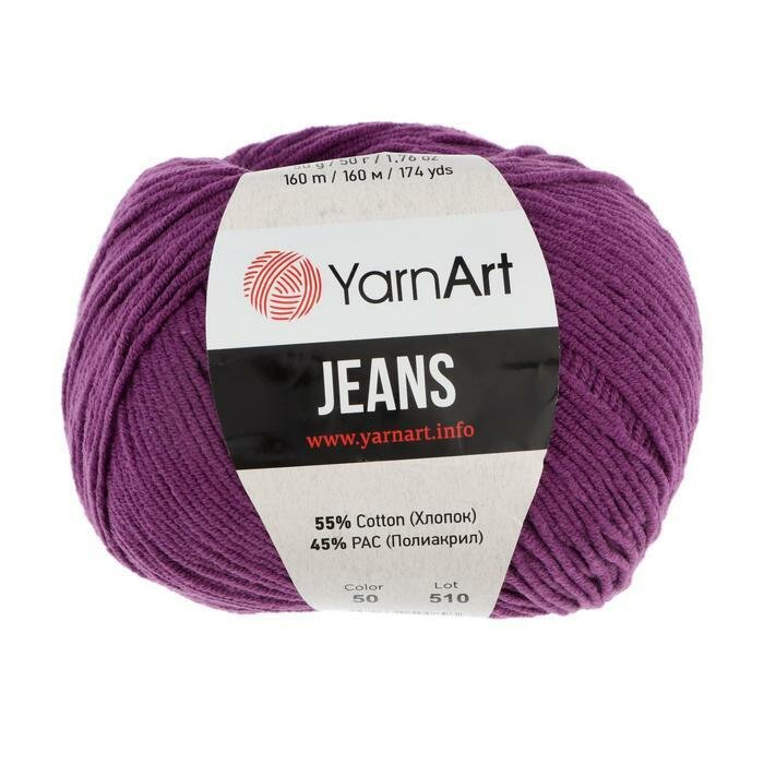 YarnArt Пряжа "Jeans" 55% хлопок, 45% акрил 160м/50гр (50 фиолетовый)