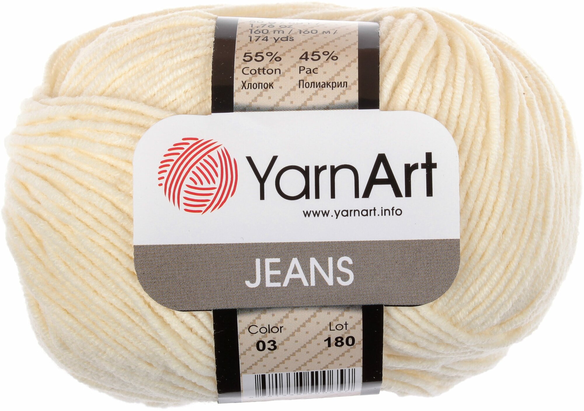 YarnArt Пряжа "Jeans" 55% хлопок, 45% акрил 160м/50гр (03 молочный)