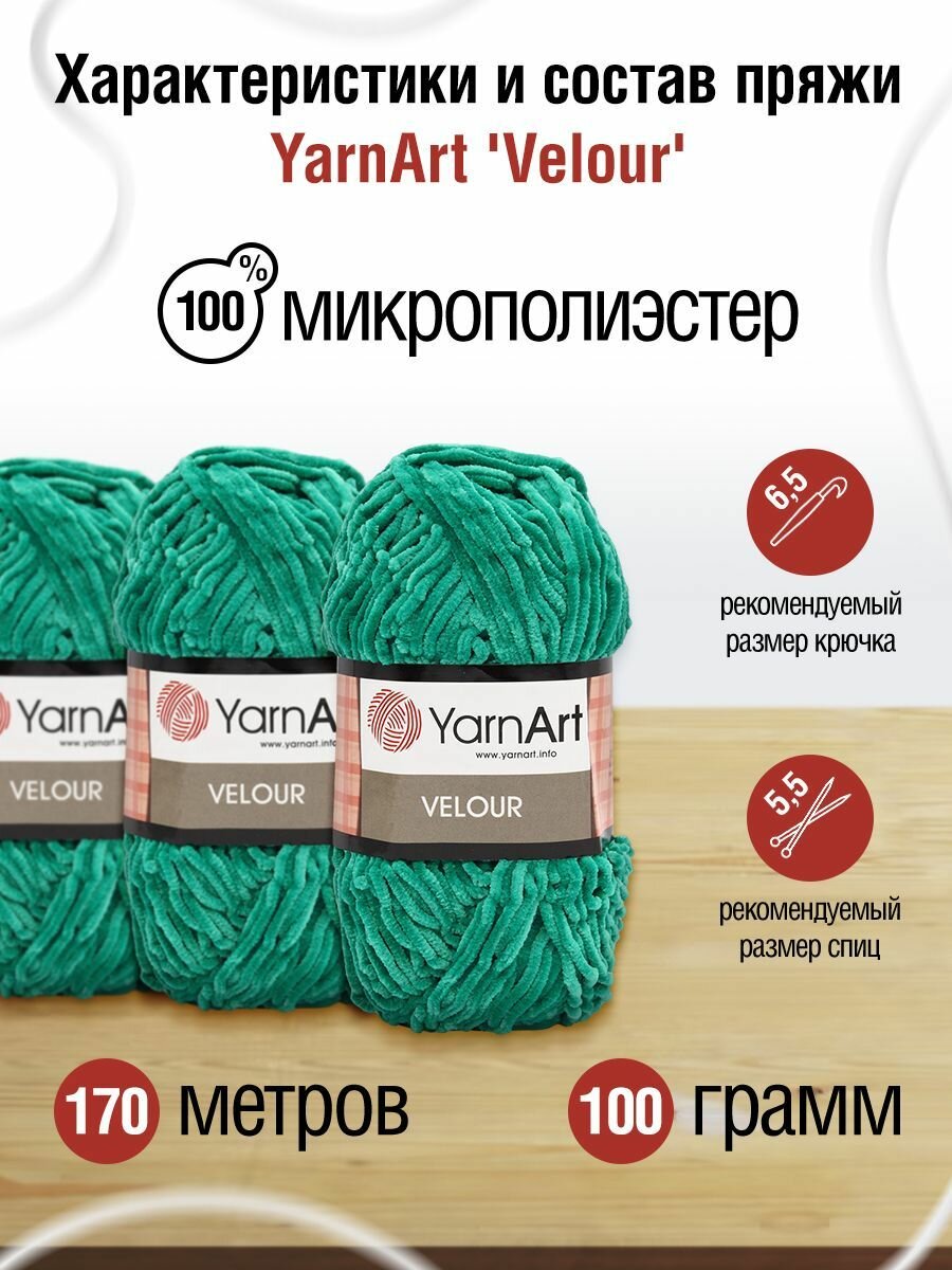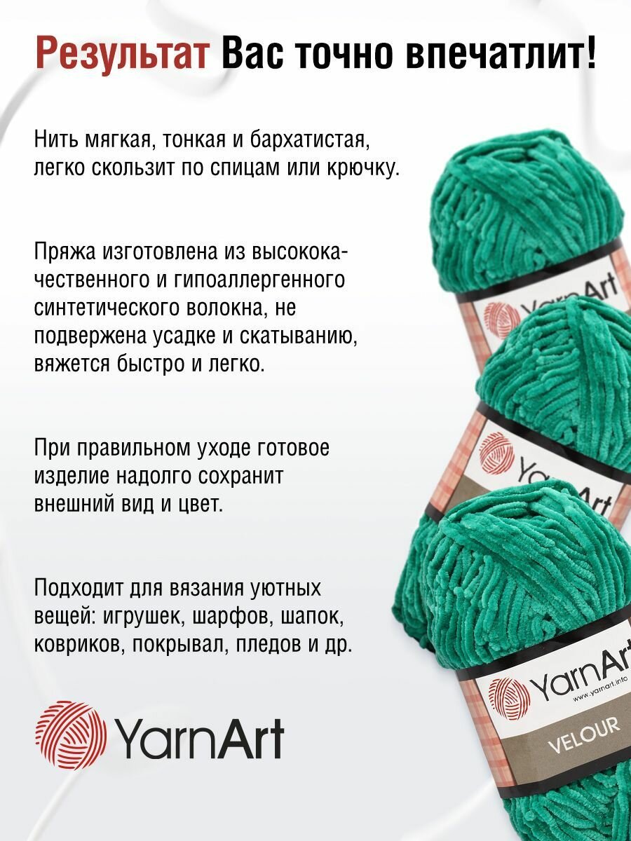 Пряжа для вязания YarnArt 'Velour', 100г, 170м (100% микрополиэстер) (850 бирюза), 5 мотков