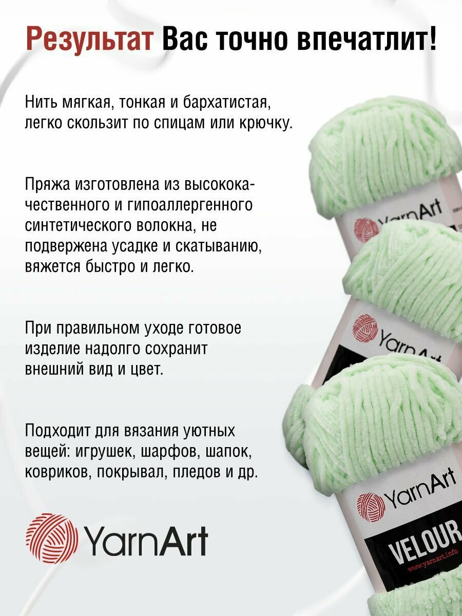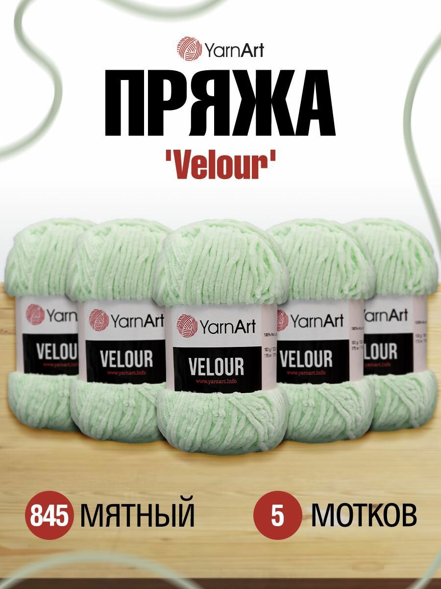 Пряжа для вязания YarnArt 'Velour', 100г, 170м (100% микрополиэстер) (845 мятный), 5 мотков