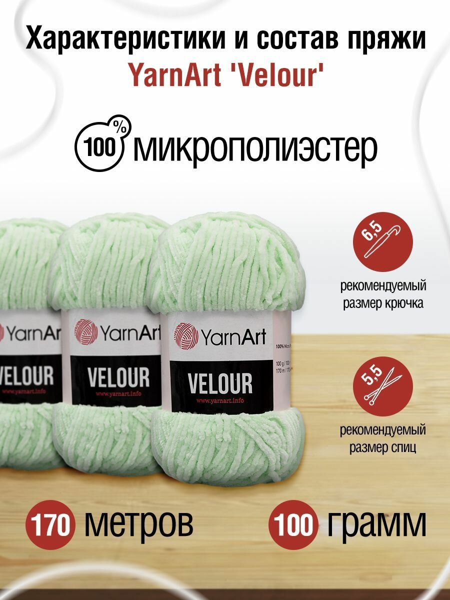 СохранитьПряжа для вязания YarnArt 'Velour' 100г, 170м (100% микрополиэстер) (845 мятный), 5 мотков интересное: