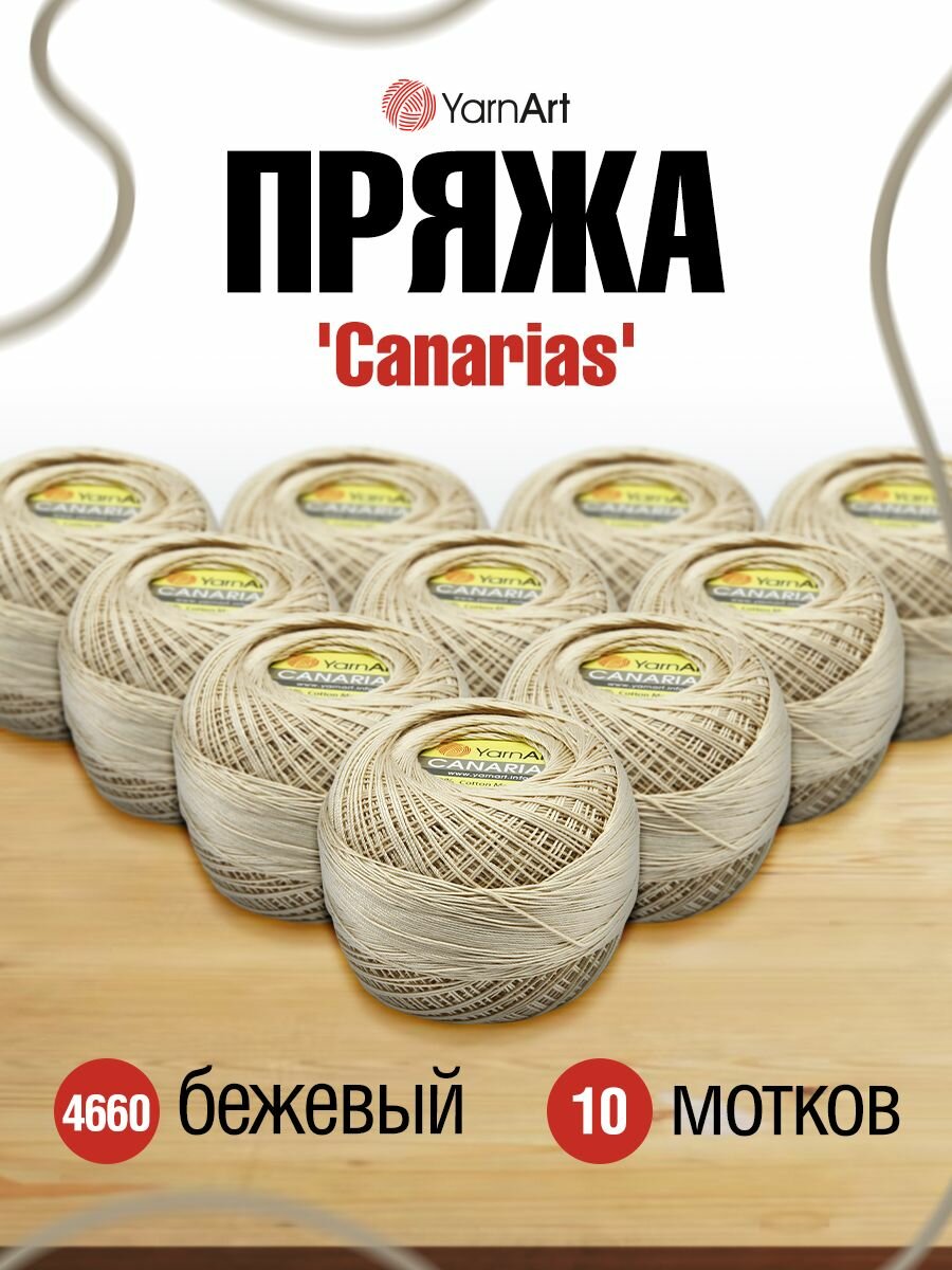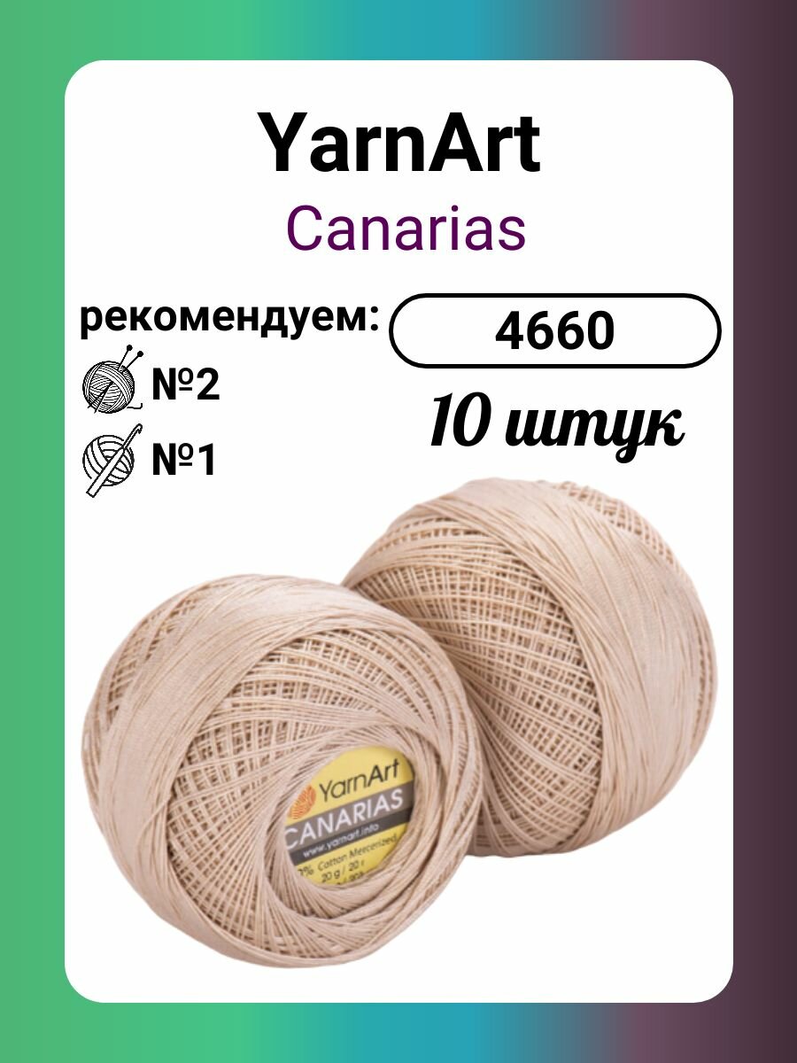 Пряжа YarnArt Canarias светло-бежевый (4660), 100%мерсеризованный хлопок, 203м, 20г, 2шт