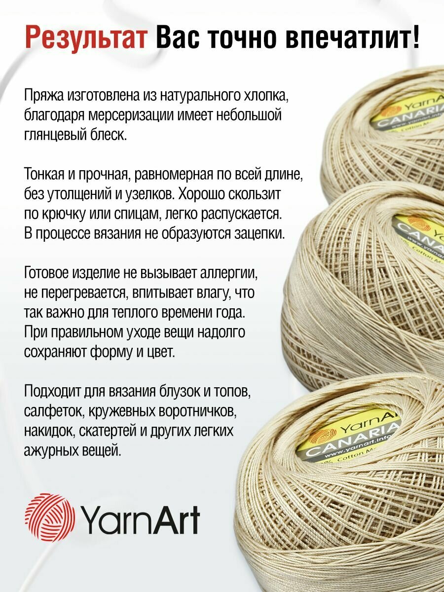 Пряжа для вязания YarnArt 'Canarias', 20г, 203м (100% мерсеризированный хлопок) (6194 молочный), 10 мотков