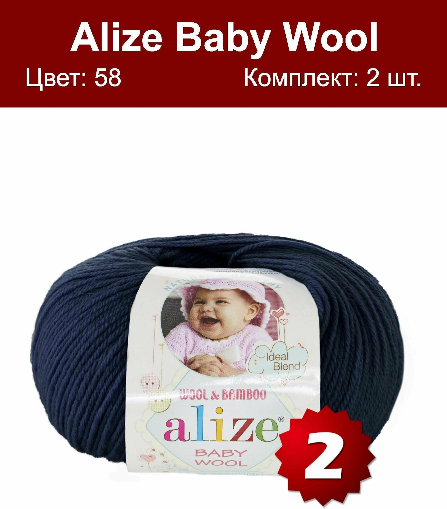 Купить Пряжа Alize Baby Wool тёмно-синий (58), 40%шерсть/20%бамбук/40%акрил, 175м, 50г, 2шт