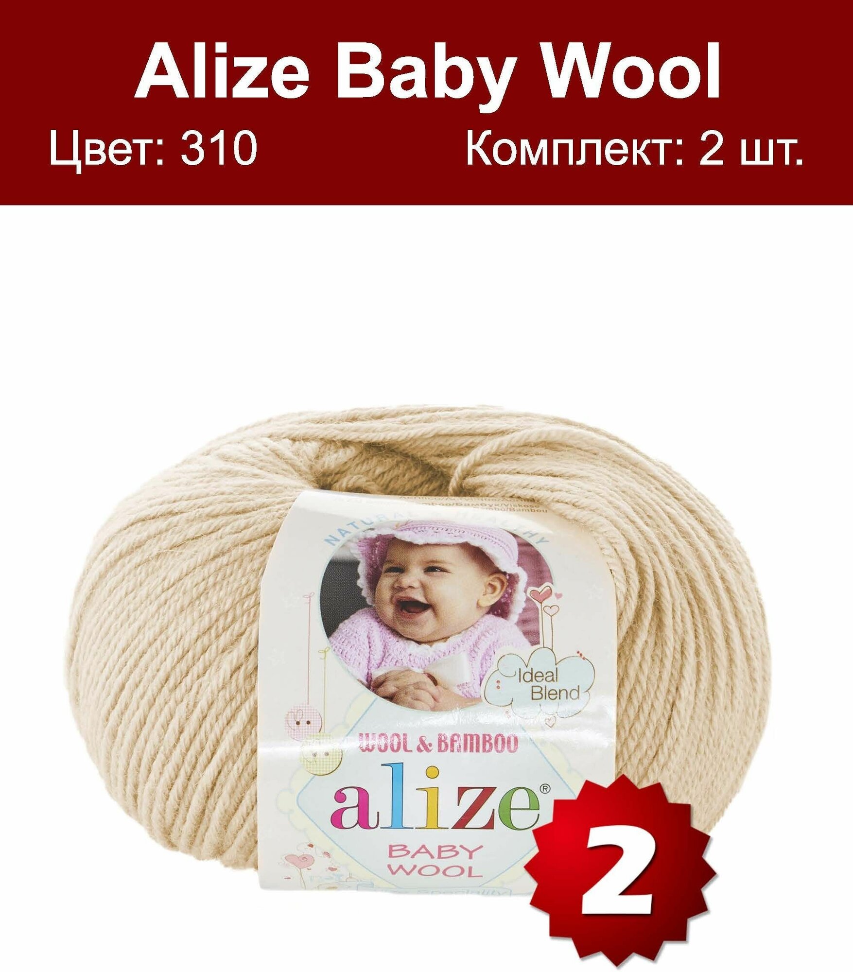 Купить Пряжа Alize baby wool - 2 шт, 310 медовый, 175 м/50г, 40% шерсть, 20% бамбук, 40% акрил /Ализе беби вул/