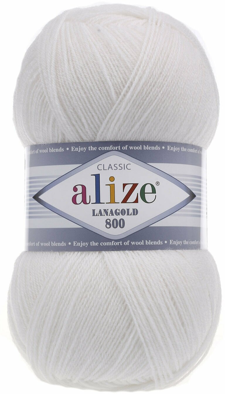Пряжа ALIZE LANAGOLD 800, белый - 55, 49% шерсть, 51% акрил, 5 мотков, 100 г, 730 м.