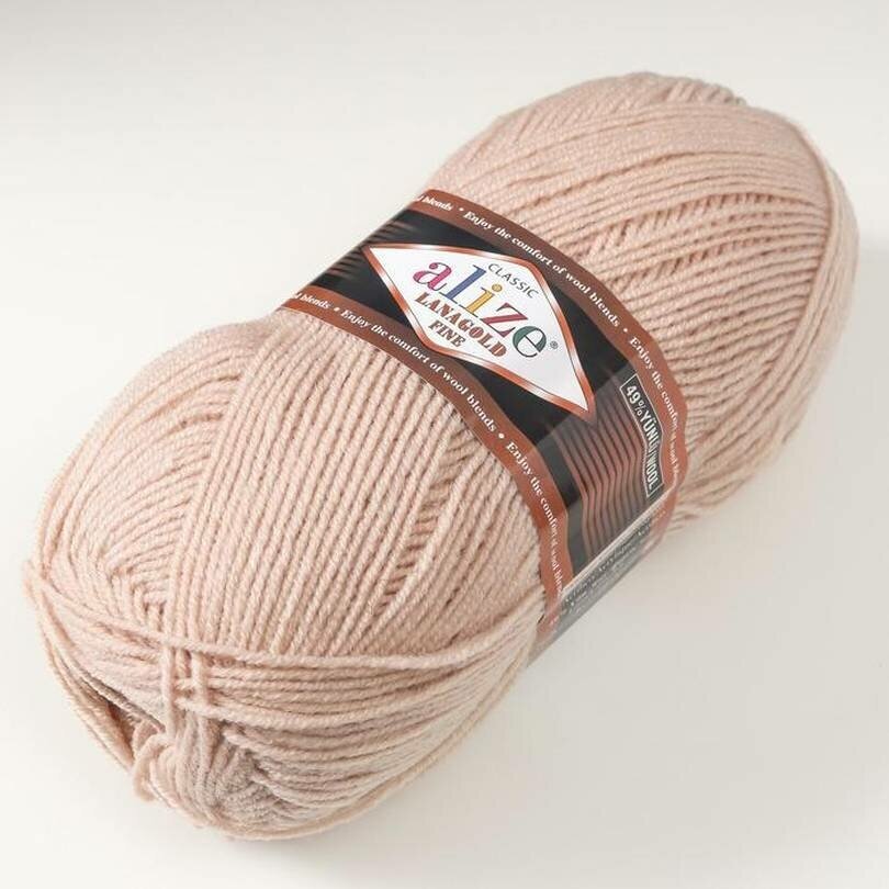 Пряжа Alize Lanagold Fine (Ализе Ланаголд Файн) - 1 моток, 05 бежевый, 49% шерсть, 51% акрил 390м/100г
