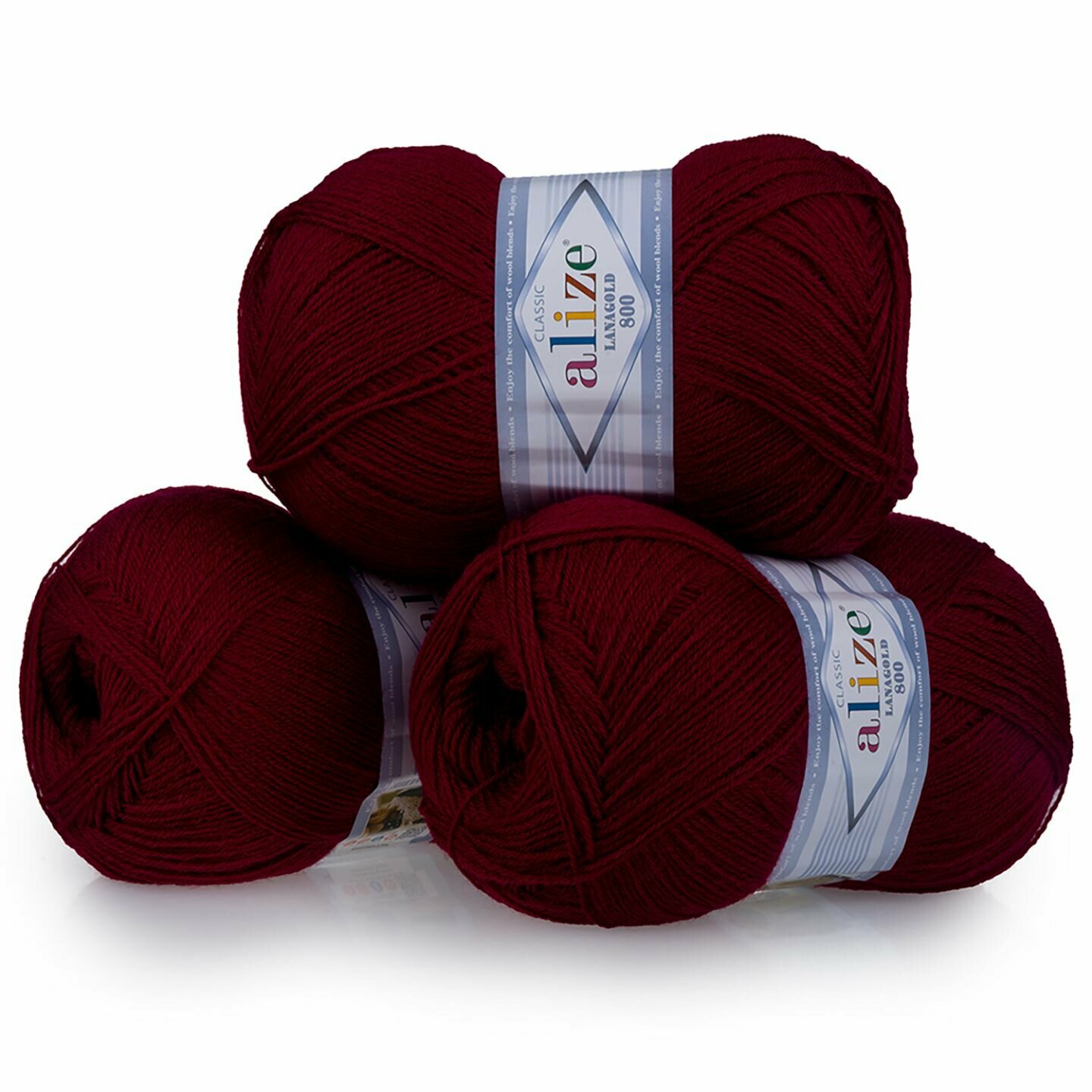 Пряжа Alize Lanagold 800 (Ланаголд 800) - 5 мотков Цвет: 57 бордовый (Ланаголд 800) 49% шерсть, 51% акрил 100г 730м
