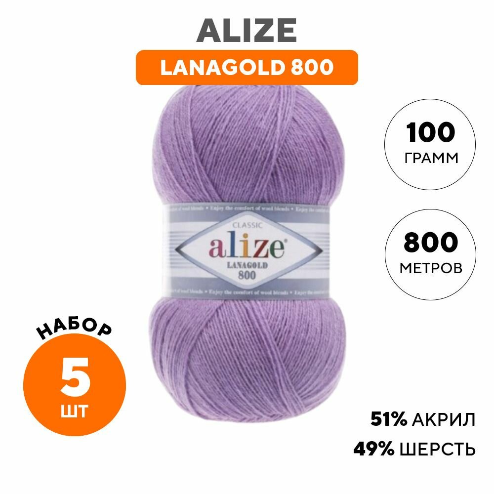 ЛанаГолд 800 "Ализе"-лаванда цвет,51% акрил,49% шерсть,100 г/730 м, 5 шт.