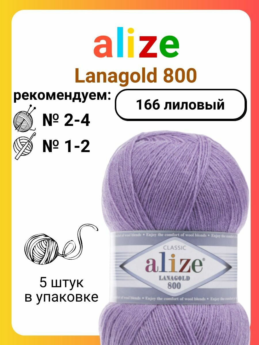 Купить Пряжа Alize Lanagold 800 сиреневый (166), 51%акрил/49%шерсть, 800м, 100г, 5шт