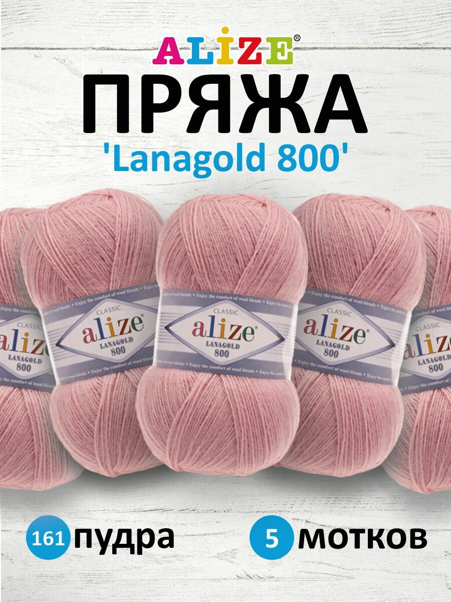 Купить Пряжа Alize Lanagold 800 пудра (161), 51%акрил/49%шерсть, 800м, 100г, 5шт