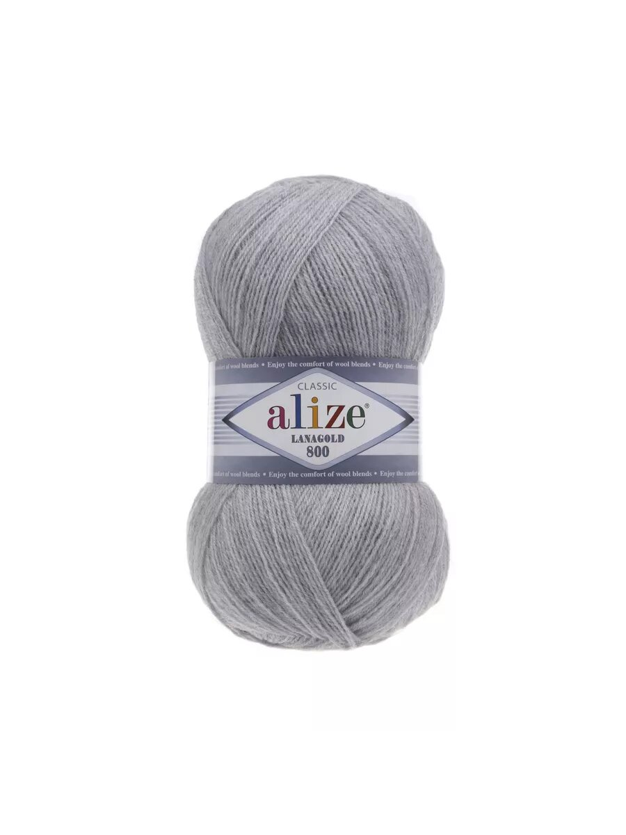 Пряжа Alize Lanagold 800 (Ланаголд 800) - 1 моток Цвет: 21 серый меланж 49% шерсть, 51% акрил 100г 730м