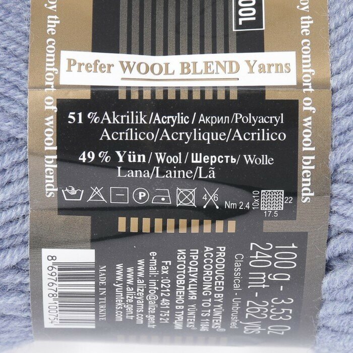 Пряжа Alize Lanagold (Ланаголд) цвет 505 пепельно-сиреневый 49% шерсть, 51% акрил 100г 240м 5шт