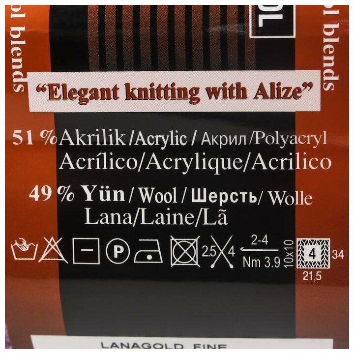 Пряжа Alize Lanagold Fine (Ланаголд Файн) - 1 шт Цвет: 505 светлая пыльная сирен 49% шерсть, 51% акрил 100г 390м