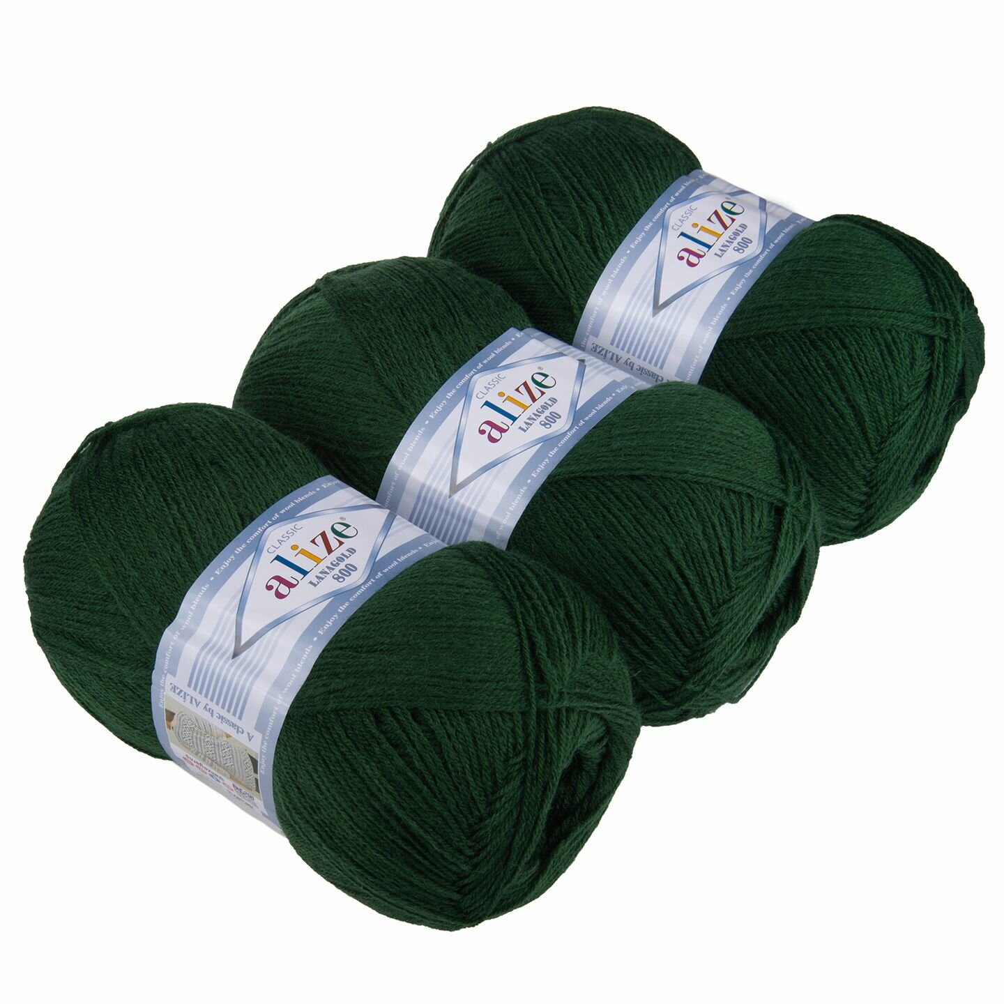 Пряжа Alize Lanagold 800 (Ланаголд 800) - 5 мотков Цвет: 426 темно-зеленый (Ланаголд 800) 49% шерсть, 51% акрил 100г 730м
