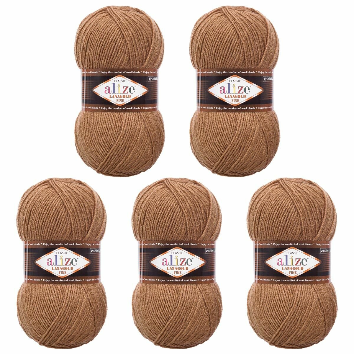 Пряжа для вязания ALIZE LANAGOLD FINE: 207 (светло-коричневый), 3 шт 390 м 100 г, 49% шерсть 51% акрил