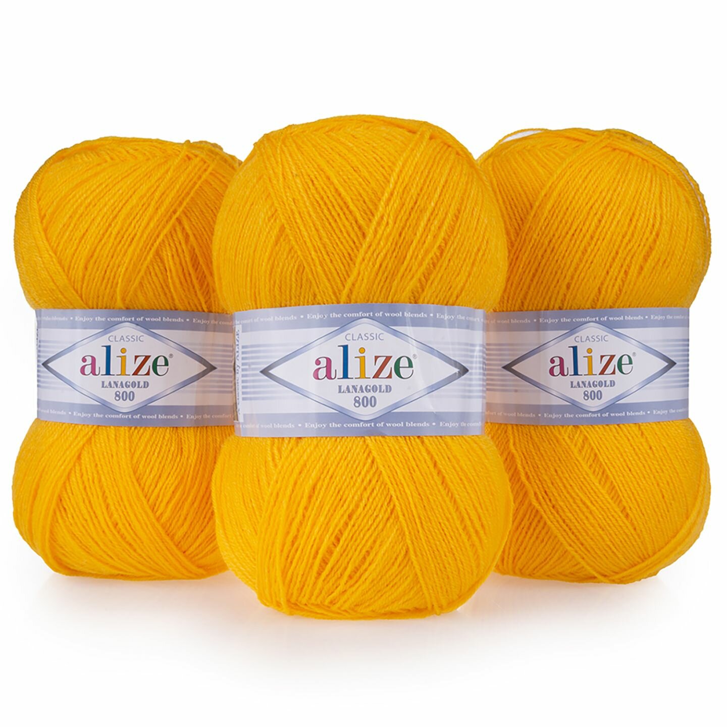 Купить Пряжа Alize Lanagold 800 желтый (216), 51%акрил/49%шерсть, 800м, 100г, 3шт