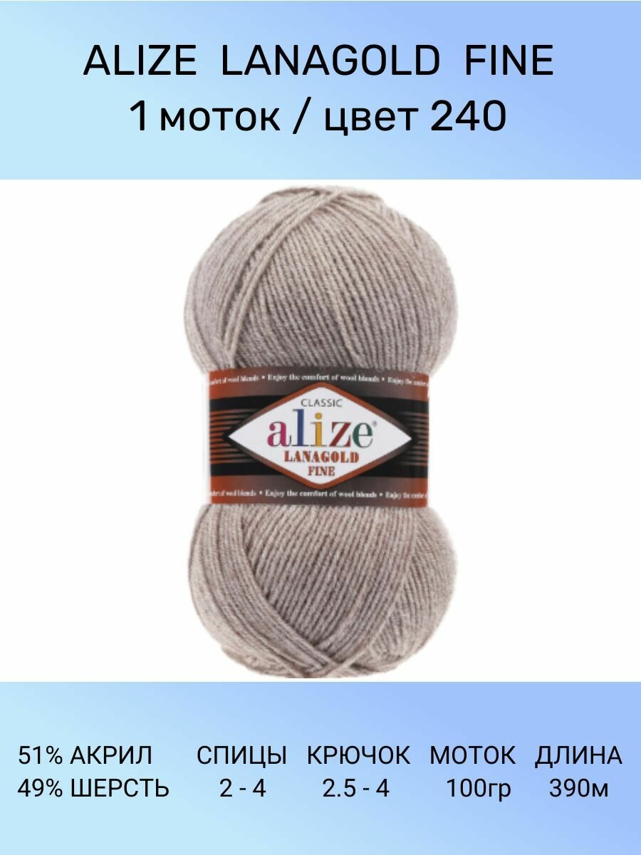 СохранитьПряжа ALIZE LANAGOLD FINE 1 шт 390 м 100 г цвет 240 интересное: