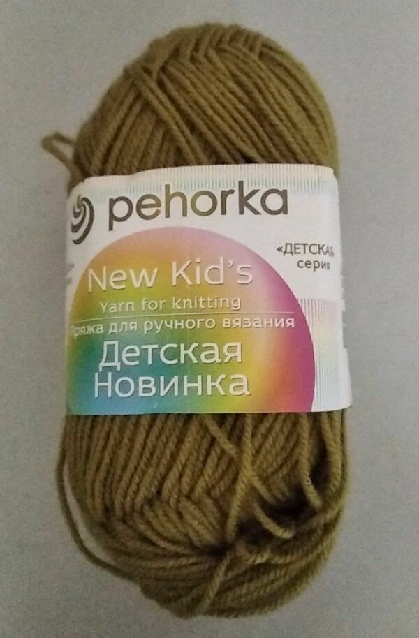Пряжа Пехорка Детская новинка золотистая олива (033), 100%высокообъемный акрил, 200м, 50г, 1шт