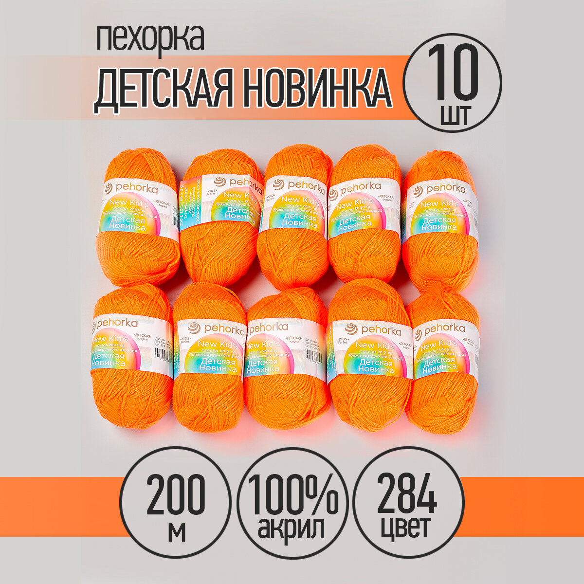 Пряжа для вязания Пехорка 'Детская новинка' 50г, 200м (100% акрил) (284 оранжевый), 10 мотков