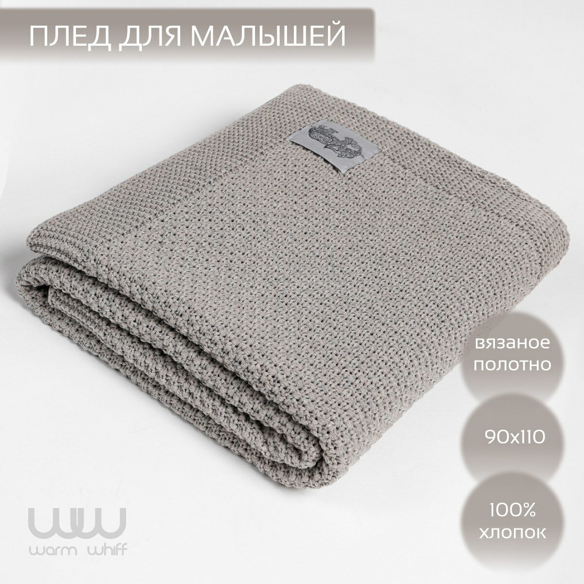 Плед для малыша, покрывало, WARM WHIFF, плед детский 90х110, хлопок 100%, светло-серый, вязаное одеяло в кроватку