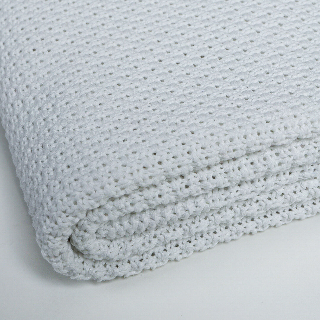 Плед вязаный для малыша, покрывало, хлопок 100%, WARM WHIFF, светло-серый, 90х110, вязаное одеяло в кроватку, в подарок, плед тонкий детский на лето