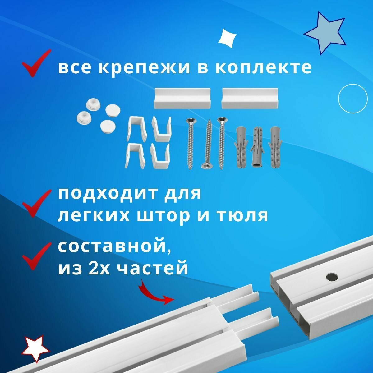 Карниз потолочный для штор и тюля, Пластмассовый, Двухрядный, Оптима Уют, цвет: Белый, 240 см, составной из двух частей
