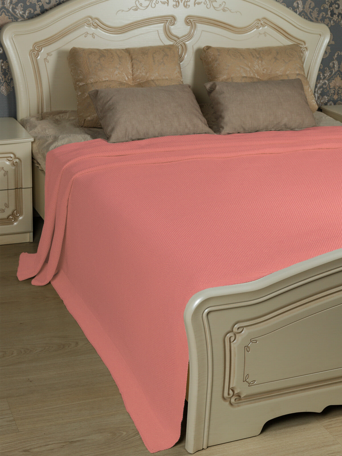 Плед 180х220, вязаный, Warm Whiff, коралловый, хлопок 100%, покрывало на кровать, на диван, на кресло, большой, тонкий, в подарочной коробке