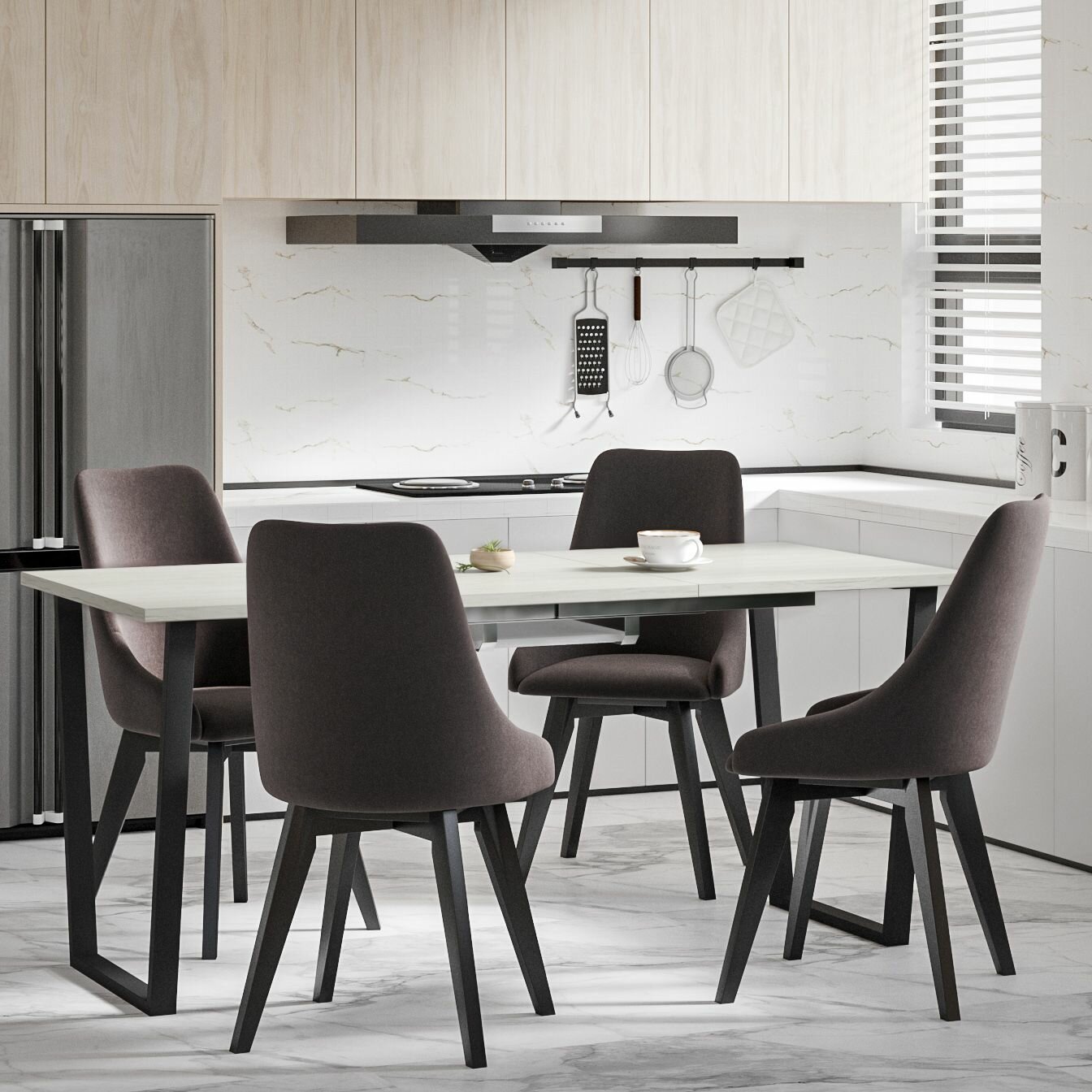 Стол кухонный обеденный атлант 02 EGGER: Камень черный раздвижной в стиле лофт