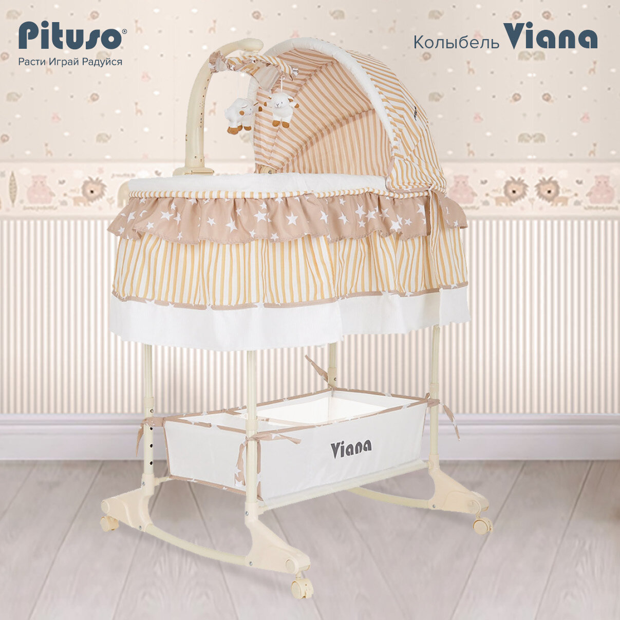 Купить Колыбель 3 в 1 Pituso Viana, Stars Beige/Звёзды, бежевый