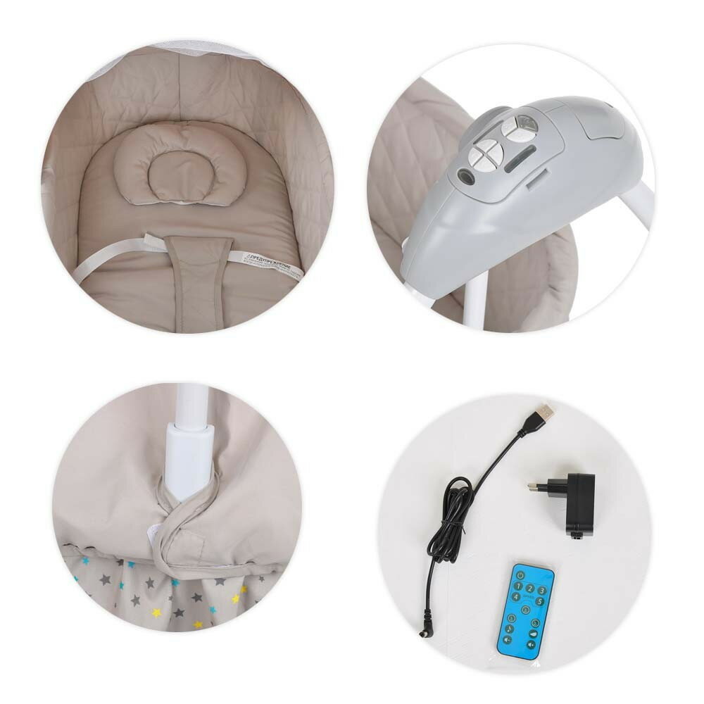 Электрокачели - колыбель Pituso Camellia Beige star/Звездочка, Качели для детей, электрическая шезлонг для детей, колыбель с Bluetooth, качающееся кресло, детская кроватка, люлька, музыкальный пульт дистанционного управления бежевый