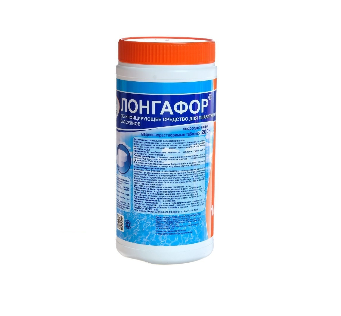Маркопул Кемиклс Дезинфицирующее средство "Лонгафор", таблетки 200 г, для воды в бассейне, 1 кг