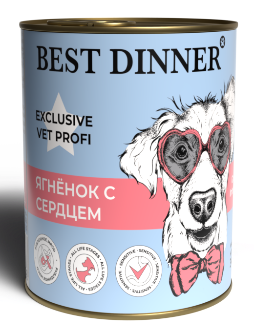 Влажный консервированный корм Бест Диннер Best Dinner для собак Exclusive Gastro Intestinal, ягненок, сердце, 340 гр. По 12 шт.